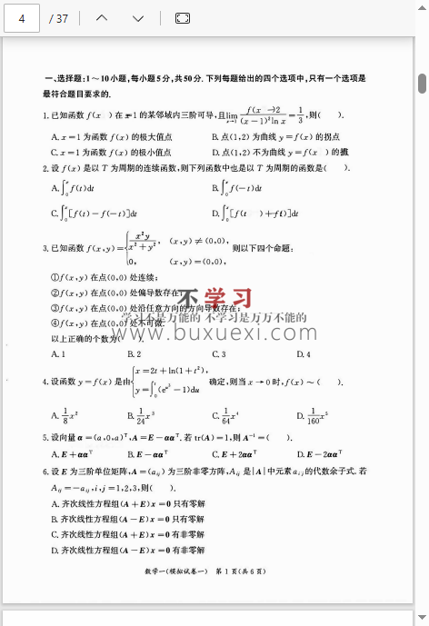 《25余丙森《5套卷》》是一本针对学生学习需求而编写的教材,特别适合备考的学生使用。这本书的文件大小为119.12MB,内容丰富,涵盖了多个学科的知识点。 首先,这本书的主要目标是帮助学生在考试中取得更好的成绩。书中提供了5套完整的,每套试卷都经过精心设计,力求贴近真实的考试形式和内容。这些试卷不仅包括选择题、填空题、解答题等多种题型,还覆盖了重点知识和难点,帮助学生全面复习。 其次,书中还附带详细的答案解析。这些解析不仅提供了正确答案,还解释了每道题目的解题思路和方法,让学生能够更好地理解知识点。通过这些解析,学生可以找到自己的弱项,针对性地进行复习和提高。 此外,这本书的结构非常清晰。每套卷子都有独立的章节,方便学生逐步练习。同时,作者在书中穿插了一些实用的学习技巧和复习方法,帮助学生提高学习效率,合理安排复习时间。 总的来说,《25余丙森《5套卷》》是一本实用性强、内容丰富的辅导书,能够有效帮助学生巩固知识、提升应试能力。如果你正在为考试而努力,这本书无疑是一个值得推荐的好帮手。