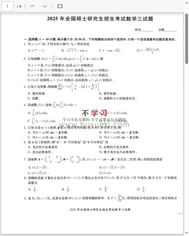 考研数学历年真题 ZIP 数学一数学二数学三(1987-2025)628.20MB 真题合集打包下载