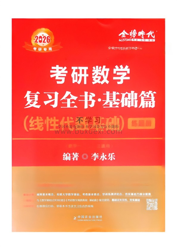《26李永乐复习全书基础篇-线代(练习册) PDF》是一本专为线性代数学习而设计的复习书籍,文件大小为14.97MB。该书旨在帮助学生系统地复习和巩固线性代数的基础知识,提升解题能力。
